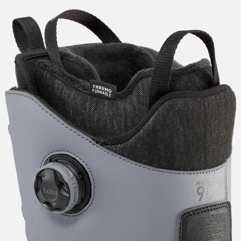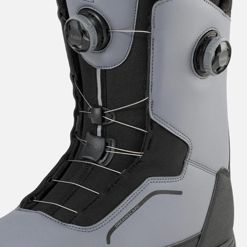 La configuration « habu®FitSystem dual-dial Focus™ » (produit par Boa® Technology) permet au rider de contrôler entièrement l’ajustement de la chaussure dans deux zones distinctes, pour mieux piloter sa board :