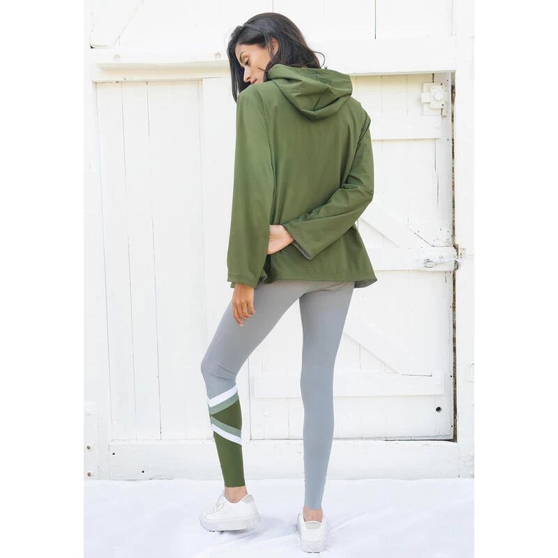 L’imperméable Iris gris et vert foncé à capuche vous protègera du vent, de la pluie et des températures froides. Il est imperméable, réversible et bicolore.