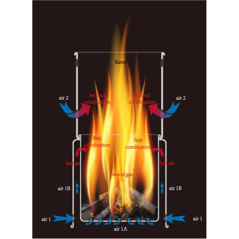Poêle à bois léger et compact en 3 pièces. Les pièces s’emboîtent et sont livrées dans un pratique sac de rangement en nylon.